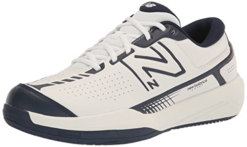 New Balance Men’s 696 V5 Hard Court Tennis Shoe, White/Navy, 10.5 Wide